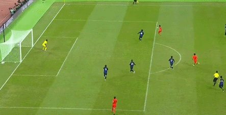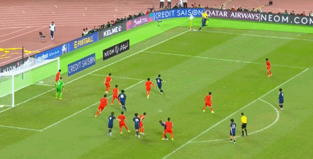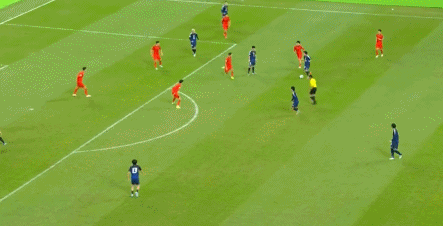 第65分钟,久保建英将前场任意球吊到门前,但日本队3名球员同时前插互相干扰,错失一次良机,国足逃过一劫。