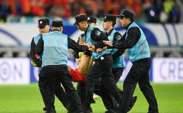 随后有球迷冲入场内,怒喷日本队门将,比赛一度被中断。