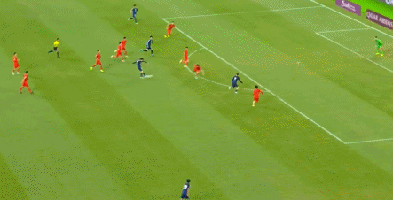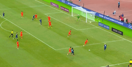 第30分钟,中国队前场断球,林良铭拿球禁区前沿远射被后卫将球封堵出底线。