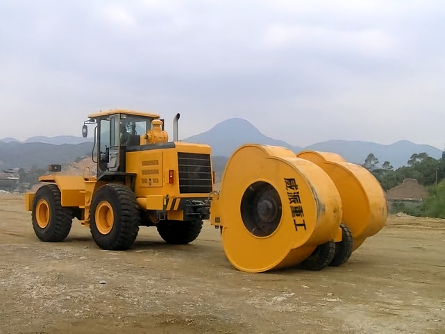 、其二,灵活适配性极强,铲车转向灵活、操作便捷,可轻松拉动冲击压路机进入狭窄场地、桥台背、涵洞侧、管线周边等传统冲击压路机难以抵达的压实盲区,也能适配平面、斜面等不规则施工场地,无需额外修整场地即可开展作业,解决了传统冲击压路机转场不便、适配性差的痛点。