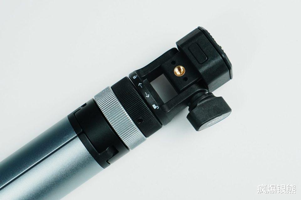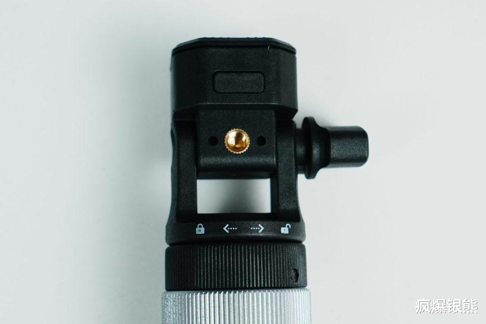 支架云台侧边其还设计了一个带阿莱定位的四分之一螺丝口,可以外接手机夹、魔术腿等配件。