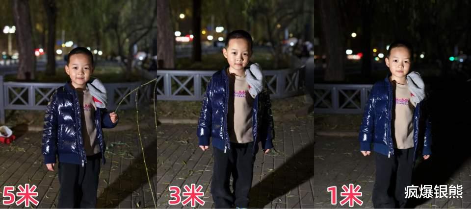 在补光效果上,这里我简单跟大家分享下,手机开启人像模式,分别在1米、3米和5米对模特进行拍摄,实际表现如上图,就拍摄效果而言,P40的亮度还是非常不错的,5米开外补光都杠杠滴!