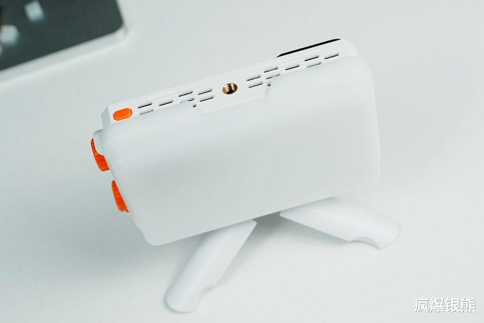 补光灯背面除了好看外,中间位置还设计了一个主动散热风扇,当机身内部温度过高时其会自动启动,温度下降后会自动关闭,风扇噪音不高,视频拍摄时很微弱。另外随机附带的二合一手柄支架也蛮好用,可方便我们手持,也可以让我们固定在需要的地方。