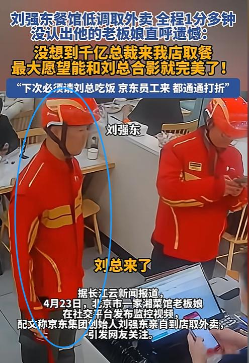 4月23日,在北京市一家湘菜馆的老板娘,在社交平台上发布一条自己店里的一段监控视频,视频内容的配文为,“京东集团创始人刘强东亲自到店取外卖,”这条视频很快的形成了热点。