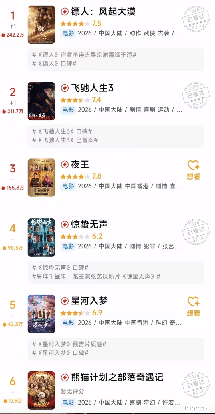 与同档期相比,其他影片有谁?沈腾、吴京、张艺谋、成龙、熊大熊二,都比《星河入梦》早定档。