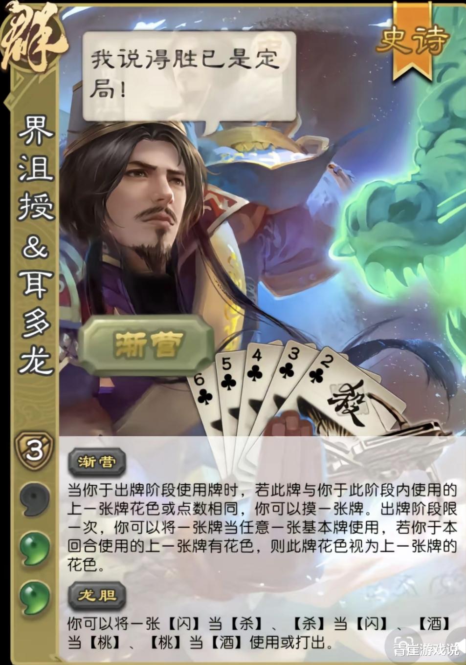界沮授绝对是烂中烂的代表,【渐营】+【矢北】本身没问题,之前环境红利也只能代表官方偏爱。那我请问界沮授何德何能三点护甲呢?大家都知道,武将四点血量、文官3点血量这个基础设计规则,而界沮授居然能有六点血量!这不是为了强度强行加的数值吗?这还不是逆天是什么?