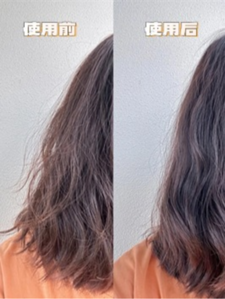 它的使用感受:刚洗完头擦干水分抹上,发尾像被云朵托住了,蓬松却不毛躁,吹风机一开就顺滑得有点懵——但隔天早起扎马尾时,后颈那几缕又悄悄炸开了,挺真实;技术上它用的是微囊包裹的轻质油,温热会慢慢释放,不是那种一层蜡糊在表面的假滑,所以能撑到半下午才开始返干。