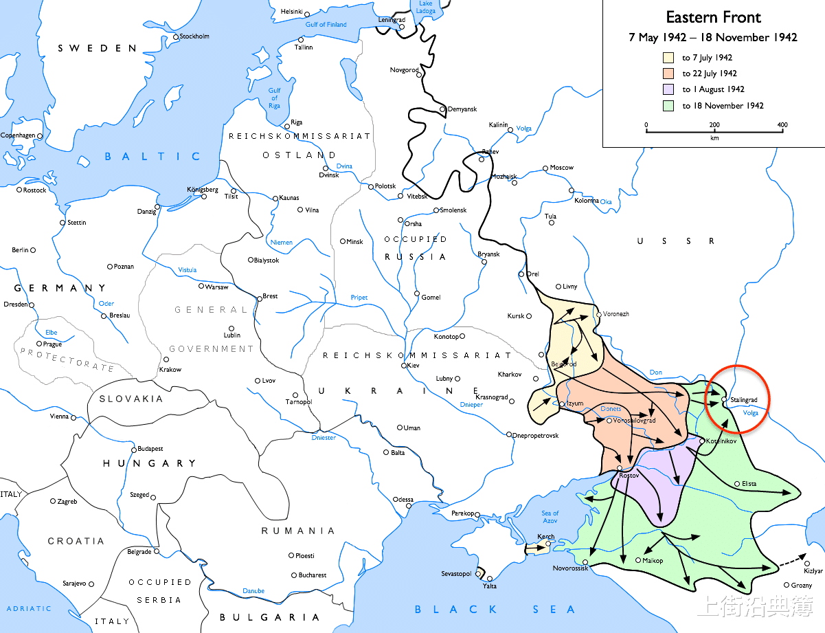1942年二战时期,德军所瞄准的就是这片土地本身。沿着顿河往东推进,把伏尔加河切断,那么苏联的高加索石油就没办法往北运输了,坦克就会瘫痪。库班平原和顿河的小麦送不出去了,莫斯科就会饿死。