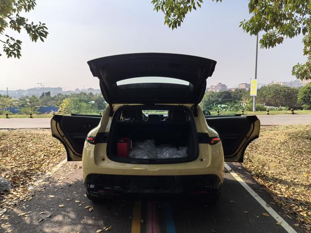空间表现方面,很多车主表示,零跑Lafa5的空间超出了他们的预期,虽然是低趴宽体设计,但空间并没有受到太大影响。前排空间宽敞,身高180cm的车主坐进去,头部和腿部都有充足的空间,不会有压抑感。后排空间表现也不错,坐两个人很宽敞,坐三个人也不会太拥挤,只是中间地板有轻微凸起,长时间坐中间的人会稍微不舒服,但日常通勤大多是1-2人乘坐,这个问题影响不大。后备箱容积450L,放倒后排座椅后能扩展到1200L,平时放几个行李箱、购物袋,或者偶尔拉点大件物品,都完全够用。
