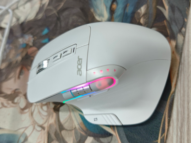 宏基 OMR225 在尺寸上属于明显偏大的类型,124×85×51mm 的机身,更适合手掌长度在18cm以上的中大手用户使用。整体轮廓比较饱满,手掌可以完整贴合,减少悬空区域,长时间使用时稳定性会更好,也不容易出现局部发力的问题。相比一些小尺寸鼠标,大手用户握上去会更自然,不需要刻意收缩手指。不过需要注意的是,这类大尺寸设计对小手用户并不友好,容易出现够不到按键或操作不灵活的情况;同时整体并不是明显的垂直人体工学结构,对手腕角度的优化相对有限,如果是冲着缓解手腕压力来的,效果不会特别突出。