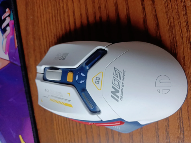 在功能层面,英菲克 IN9 支持有线、2.4G无线以及蓝牙5.0三种连接方式,使用场景比较灵活,既可以作为固定桌面设备,也可以在多设备之间切换。配备6个自定义按键,可通过驱动进行功能设置,在办公或游戏中都能提升操作效率。细节上加入了RGB灯效(支持多种模式切换)、铁氟龙脚贴以及防滑滚轮,整体更偏向“功能齐全”的路线,视觉和手感都有一定加分。不过从实际体验来看,RGB灯效对续航会有一定影响,满电约100小时在同类产品中属于中等水平;同时外观偏游戏风格,如果是在偏商务或简洁环境中使用,可能会显得不太协调。