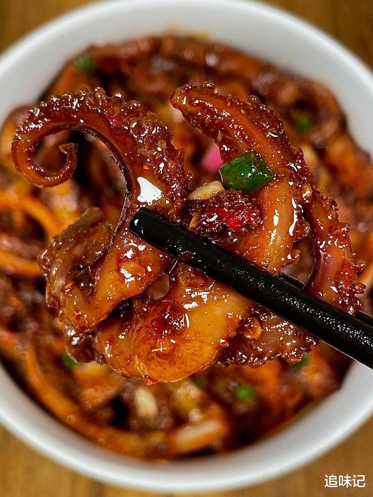 鱿鱼Q弹有嚼劲,土豆条外酥里糯,混合着豆瓣酱的香辣和孜然的独特风味,越吃越过瘾。
