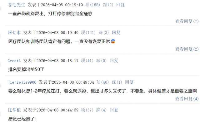消息一出,国内球迷的评论区炸开了锅。有人说一直养伤就别急着复出,打打停停哪能彻底痊愈。也有人质疑她的医疗团队和训练团队,觉得一直没有帮她恢复正常状态。