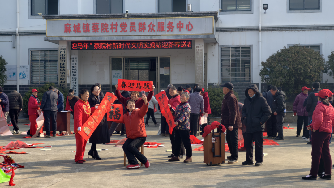 1月23日上午,区委宣传部组建的荆楚“红色文艺轻骑兵”掇刀区小分队走进麻城镇蔡院村开展首场“送春联、送全家福”下乡活动。