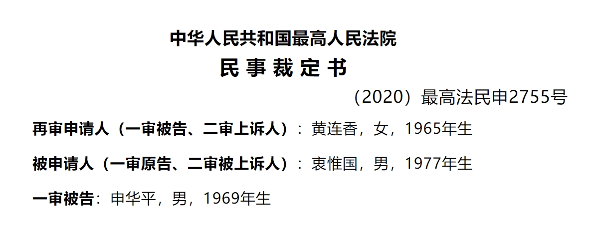 综上,最高人民法院认定黄连香的再审申请不符合《中华人民共和国民事诉讼法》第二百条第二项及第六项规定的情形,依照相关法律规定,裁定如下: