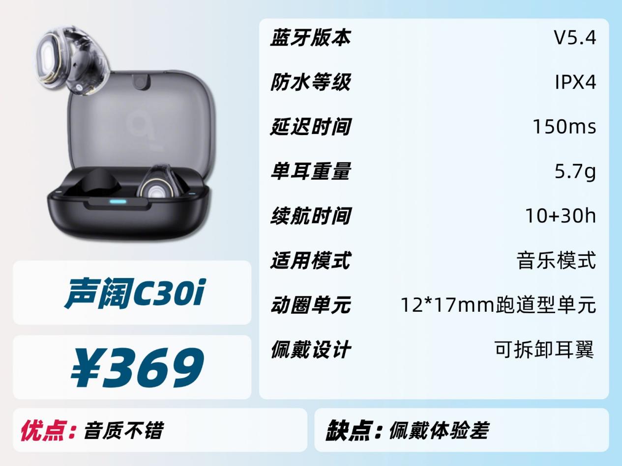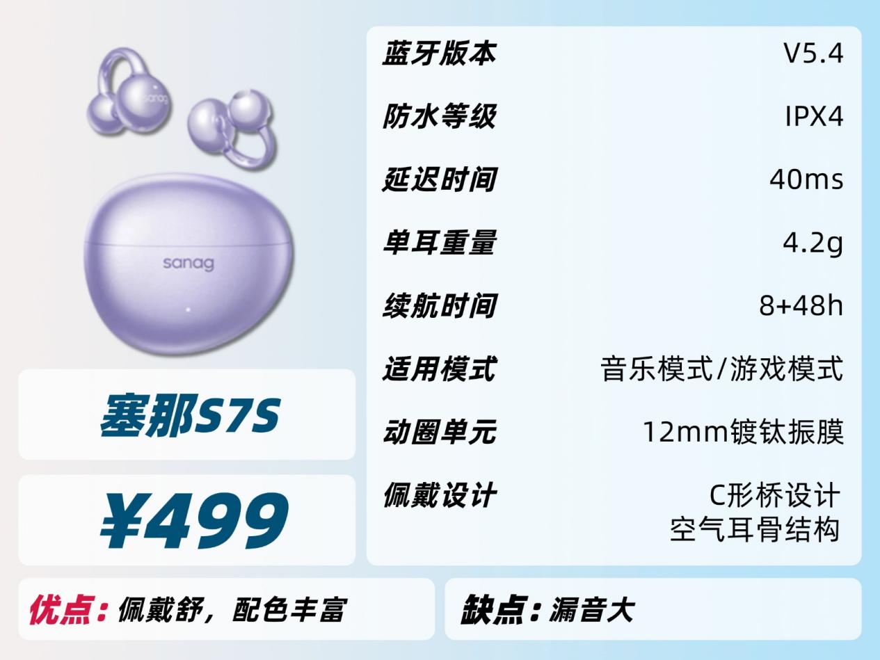 推荐指数:★★★★★推荐理由:五百价位最强耳夹式!搭载防漏音模式、双磁动圈、错位+弧面耳托设计!