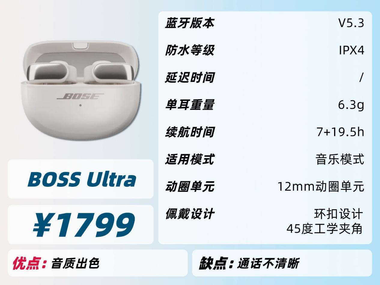 推荐指数:★★★推荐理由:独特环扣设计,BOSS音频技术,佩戴和音质均出色。