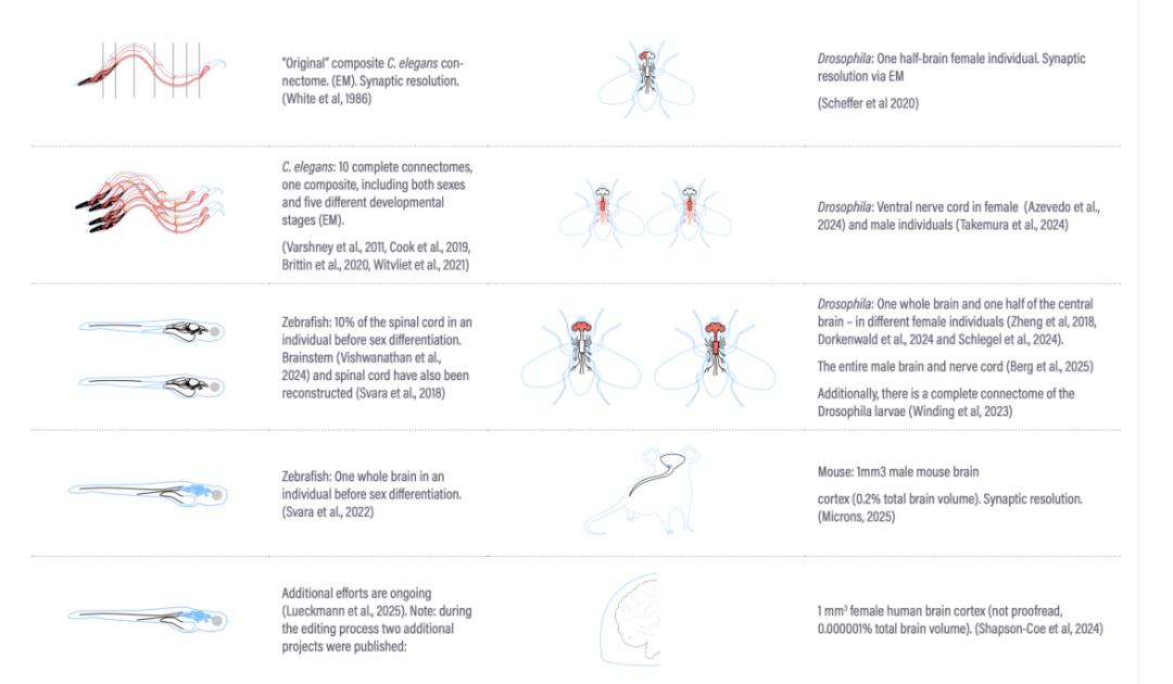 艾萨克在论文里回顾了连接组学的发展历程,1986 年科学家完成了线虫大脑的完整连接图,那个大脑只有 302 个神经元,这项工作在当时耗费了大约 15 年左右。