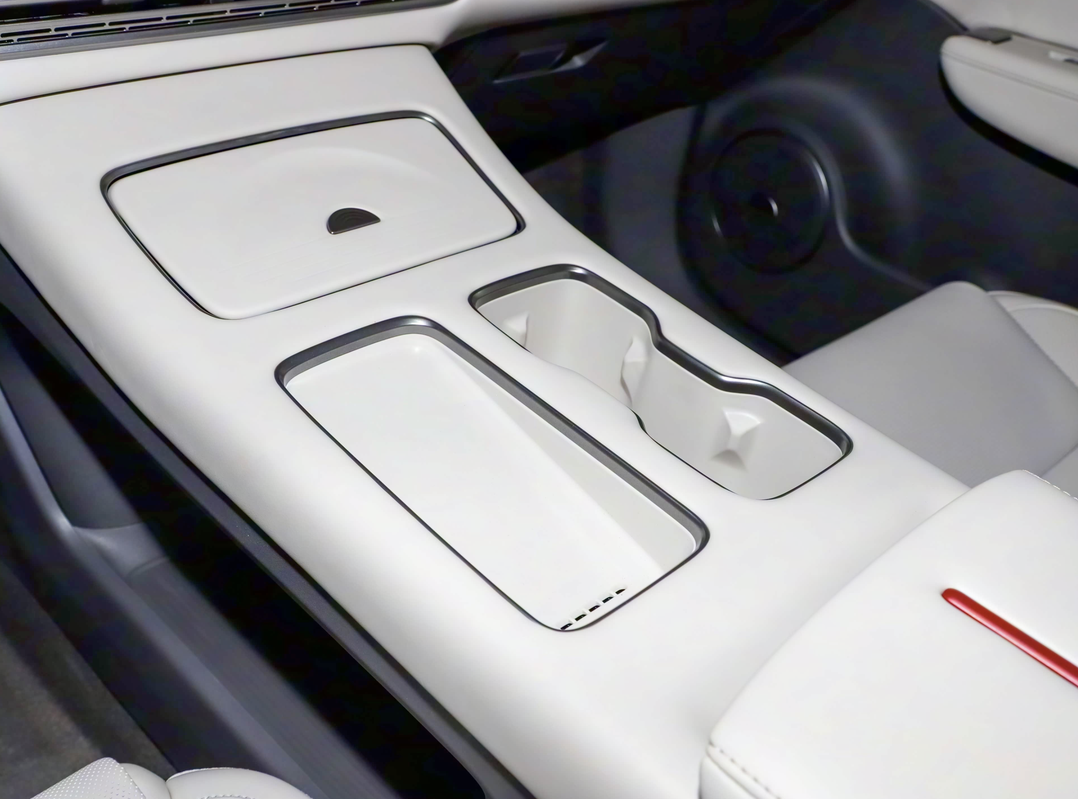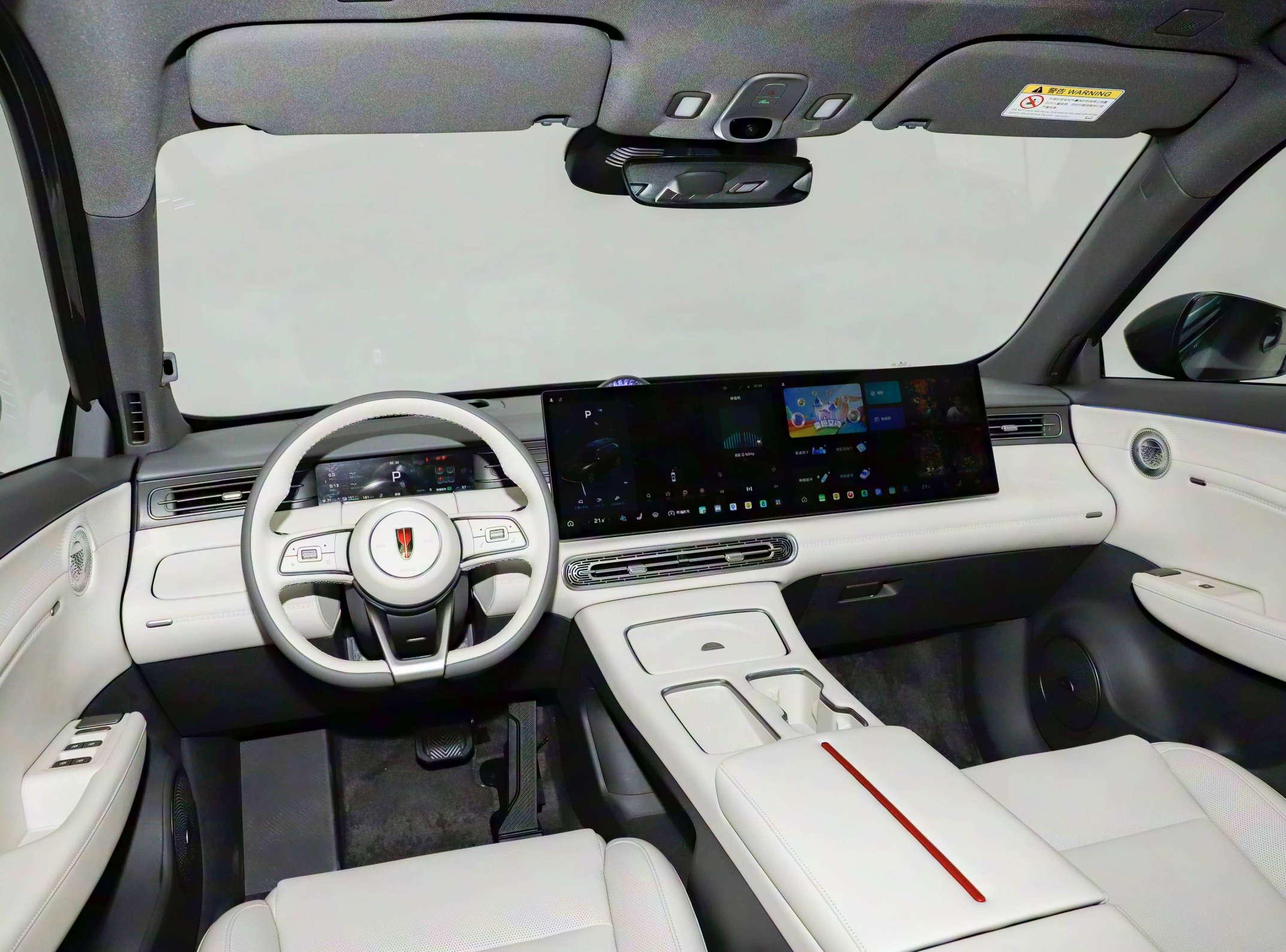 进入红旗HS6 PHEV座舱内,环抱式的座舱采用了米白色和浅灰色Nappa真皮材质铺陈,还加入了银质的装饰条,黑色钢琴烤漆饰板以及银质的圆形金属门把手,车顶配备了两段式的全景天窗,还加入了植绒的黑色地毯,第二排配备了大容量冰箱,还配备了12/16扬声器的丹拿高级音响,带来了更加高级的乘坐感受。科技感方面,该车配备了多媒体屏与副驾屏的双联屏设计,屏幕尺寸和分辨率达到了15.6英寸2.5K,内置高通骁龙8295P芯片,车机系统功能丰富,前方还带有HUD抬头显示功能,全新的旗偲1.0智联系统根据中国消费者的操作习惯进行了有针对性的调整。