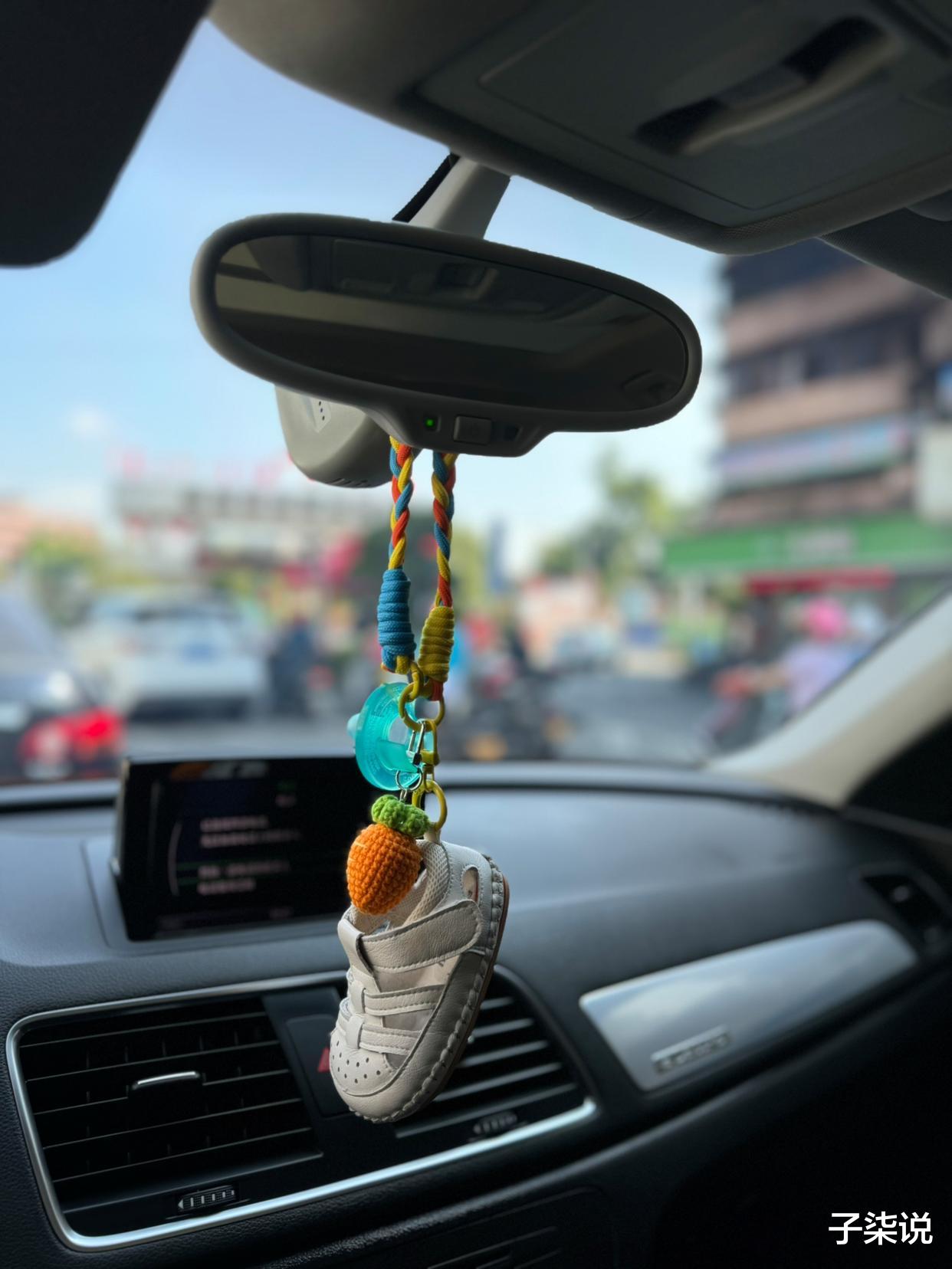 好多爸爸都喜欢把孩子穿的第一双鞋子收藏保留下来,然后挂在车里当挂件;也有的是挂在背包上。