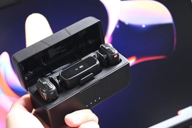 对创作者来说,续航和便携性直接影响创作效率,这两点南卡Qmic都做得很到位。它的充电仓不仅能收纳麦克风,还是个移动充电站,内置1800mAh大容量电池,两只麦克风各180mAh,接收器300mAh,综合续航能达到24小时。