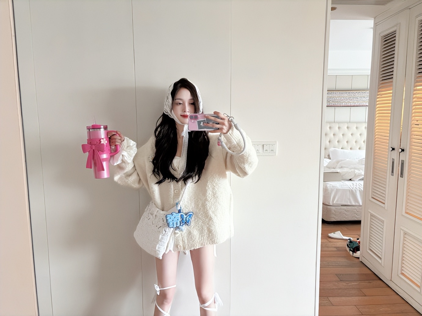 说起身材,吴宣仪的身材可以说几乎完美。她的腿部修长且纤细,穿着宽松的毛衣外套和花边的袜子,配上可爱的白色拖鞋,完美突出了她的腿部线条。