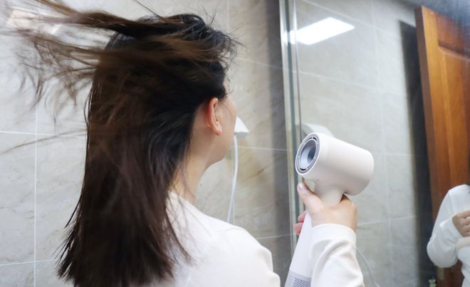 我第一次用高速吹风机是在游泳馆里,用的同事的吹风机。那时候感觉:不烫头皮、干燥速度快、吹完头发没静电,真爽!