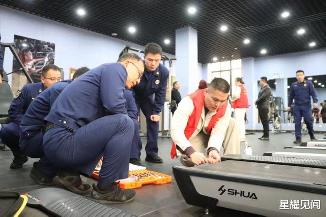 活动现场还设置了特别的“技能传情”环节。社区健身中心负责人王谦带领专业团队,向消防员们介绍了多种健身器材的日常保养知识,包括清洁技巧、安全检查项目及简单故障排除法。随后,他带领大家来到器械区,逐一示范标准操作,并鼓励队员们亲自上手实践,将理论知识转化为实际技能。