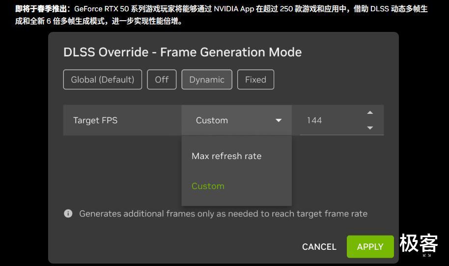 还有一项技术是:动态多帧生成,它其实是6倍多帧生成的智能化补充,让帧率生成更加智能,通俗一点来说就是帧率疯涨还稳,比如你显示器 144Hz 就给你稳在 144 左右,确保帧率与刷新率完美同步,大大提升画面与显示器的同步性,不会出现卡顿,撕裂的情况。