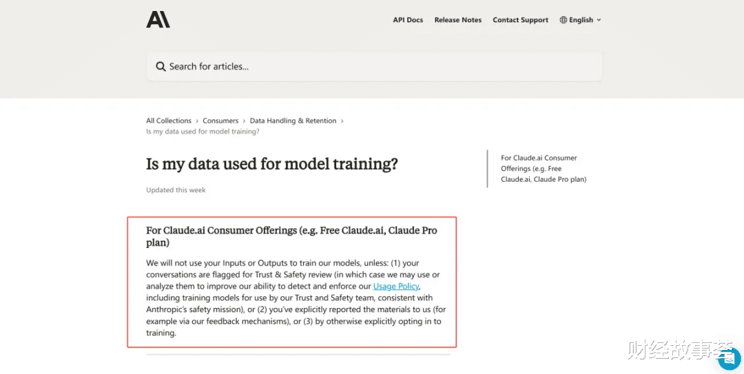 旧版Anthropic用户政策明说默认不使用用户数据训练模型,包括免费用户