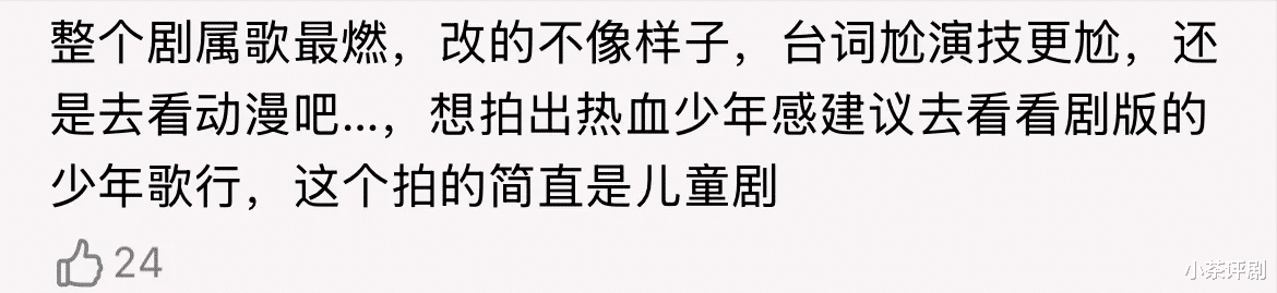 可让这部剧陷入如今境地的不是观众,而是剧方自己。因为这部剧的很多细节的确是在照搬动漫。