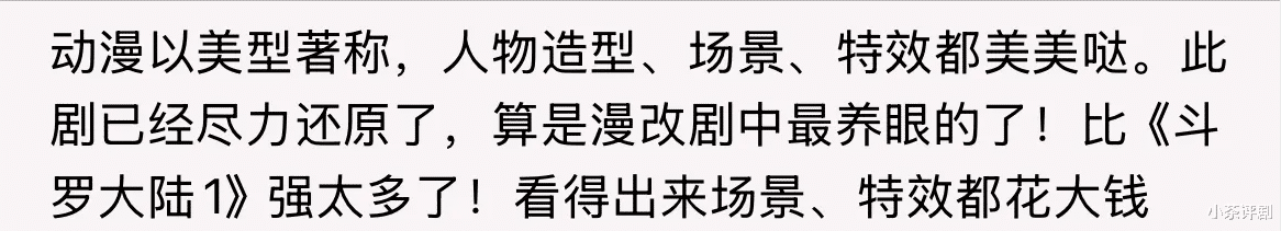 有《斗罗大陆》动漫珠玉在前,《斗罗大陆之燃魂战》要想出彩还是挺难的,网友的评价也是一针见血,比第一版好,但还是不及动漫。