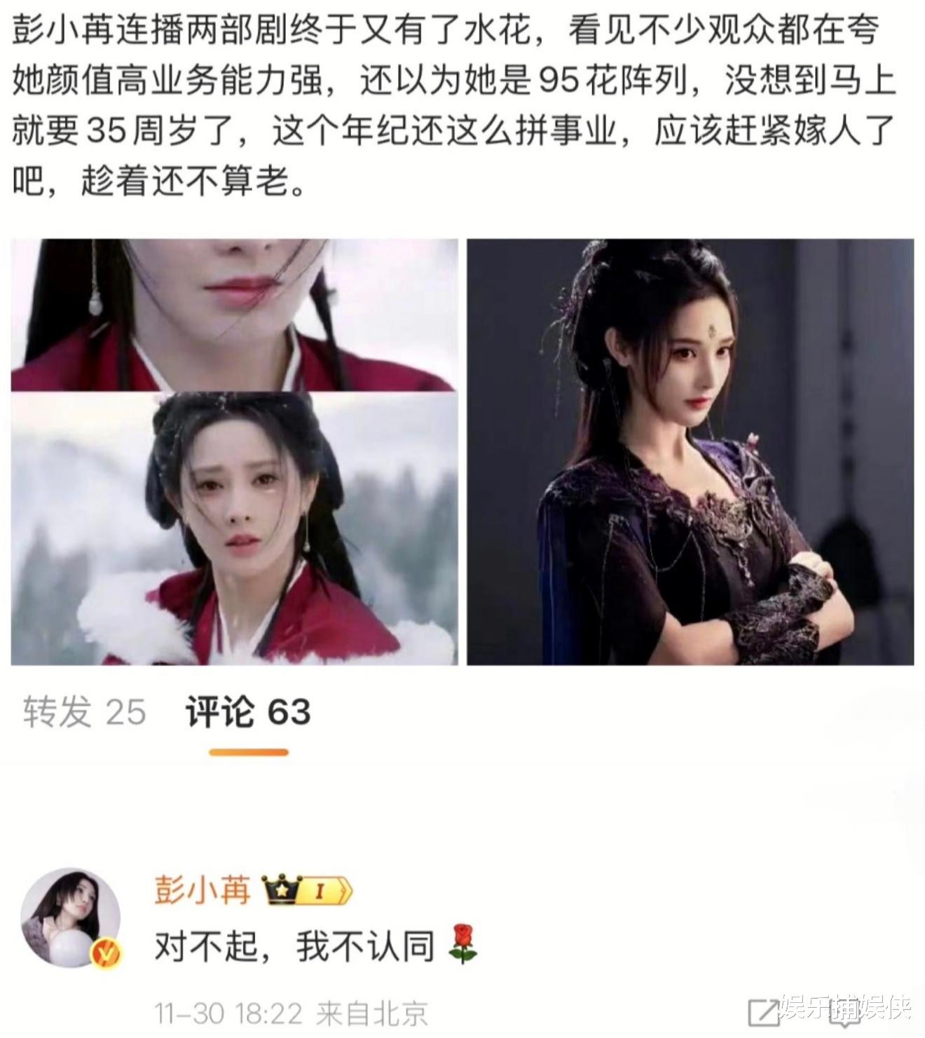 彭小苒的这句“不认同”不仅是对个人选择的坚持,也是对旧时代观念的有力回击。在这个看脸的时代,她凭借自己的实力和作品赢得了观众的认可。那些认为她应该放弃事业去结婚的人,可能还没有看到她最近的作品。彭小苒正处于事业上升期,怎么可能轻易被婚姻的“紧箍咒”束缚呢?