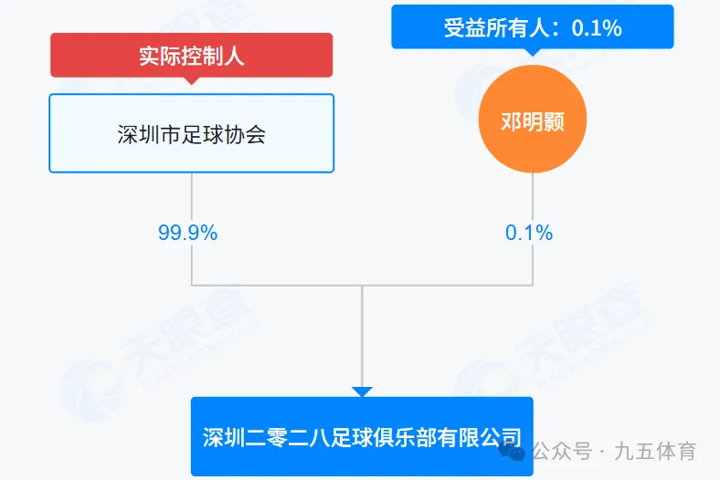 八、深圳二零二八足球俱乐部该俱乐部成立于2023年11月2日,注册资本为300万元,法定代表人是邓明颢。股权结构是深圳市足球协会持股99.9%、邓明颢持股0.1%,最终实际控制人是深圳市足球协会。