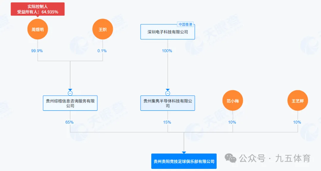 十、贵州贵阳竞技足球俱乐部该俱乐部成立于2023年5月12日,注册资本为100万元,法定代表人是张智。股权结构是贵州综楦信息咨询服务有限公司持股65%、贵州集隽半导体科技有限公司持股15%、范小梅持股10%、王艺鲆持股10%,最终实际控制人是周煜明。