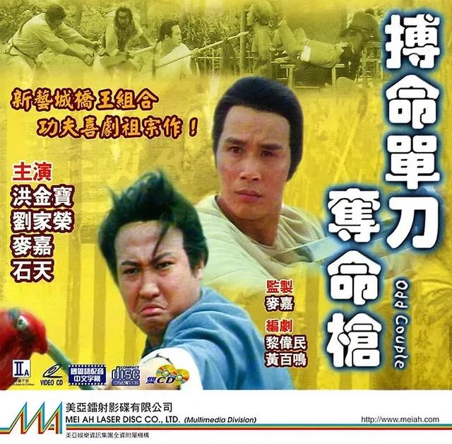 1979年,嘉宝出过一部电影,《搏命单刀夺命枪》,刘家荣导演,洪金宝、刘家荣主演,编剧是日后新艺城的三个老板之一、文胆黄百鸣。所以,后来出碟的时候,也被宣传冠以“新艺城桥王组合,功夫喜剧祖宗作”的字样。