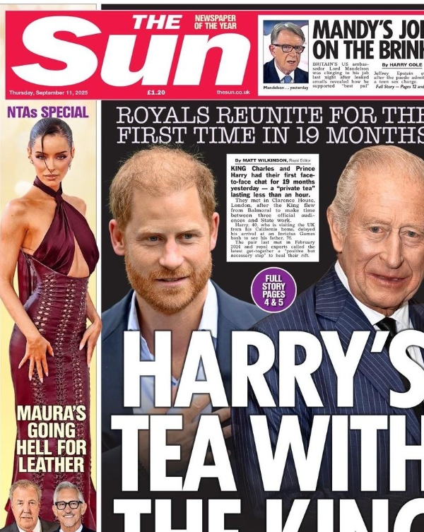 同一天,外媒《太阳报》报道,英国哈里王子昨天与父亲英王查尔斯三世一起下午茶;父子俩在一起五十多分钟,该说的话肯定说了,相处很愉快。