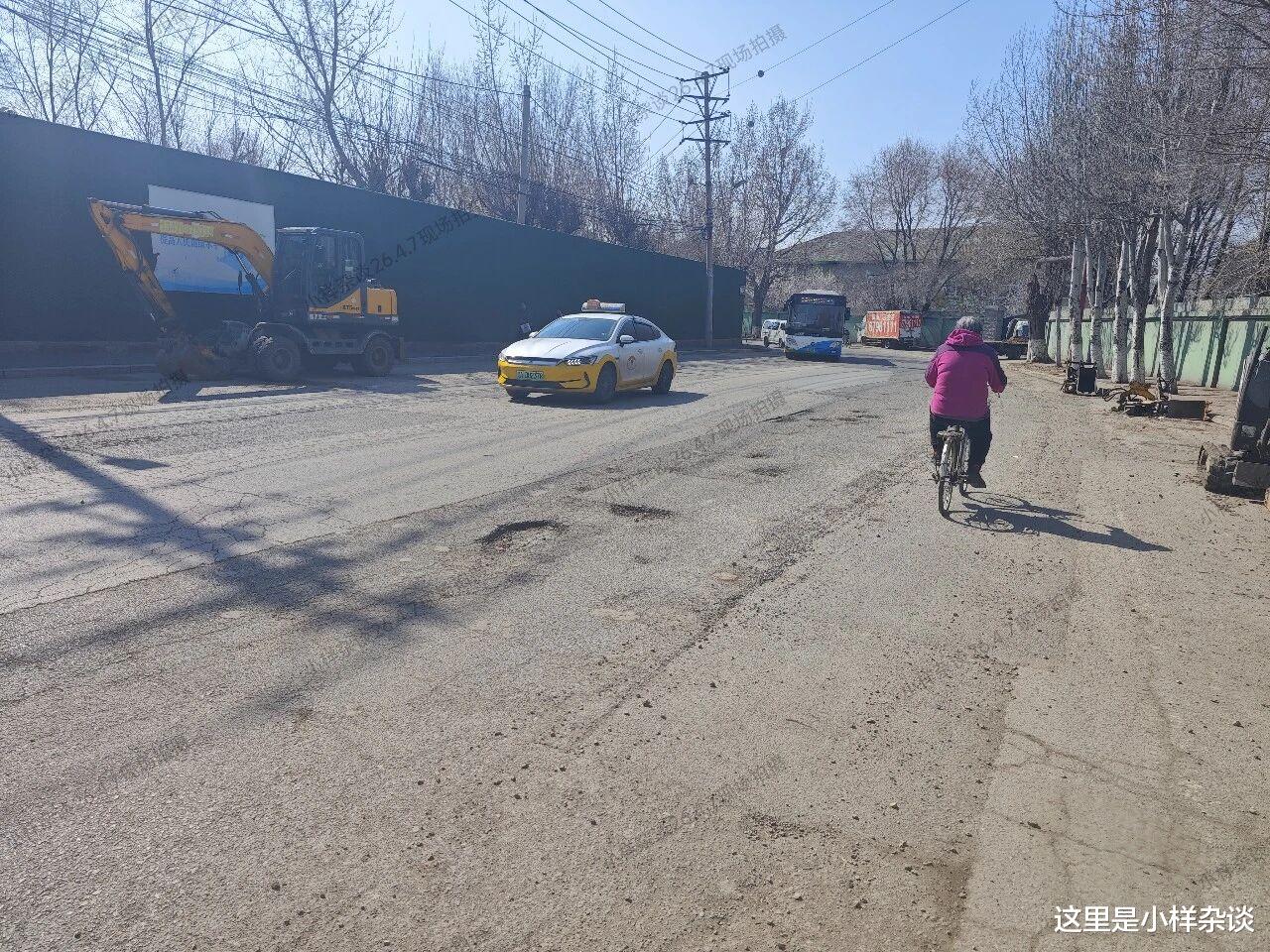 (凌云街,图片来源于2026年4月7日现场拍摄)这条路就这样破了好多年,本身标准就不高,没有独立非机动车道和标准人行道,甚至连标志线都没有,跟乡道差不多。这些年这条路一直这样的原因就是在等周围棚户区动迁,八里堡全动迁了这里重新规划这条路可能就没有了,但是因为东塔机场一直没有动迁,这里也就一直没有动迁,这条路也一直这样破破烂烂。