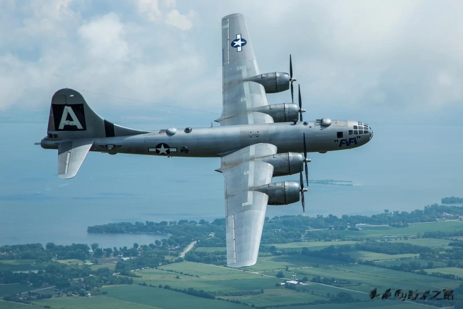三、B-29本身,机背、机腹和两侧的机枪都被“抹平”,只保留“尾刺”,而且尾炮手主要职责变为后方瞭望。这其实非常冒险并引发激烈争议,因为此前德国空军教会了美国陆航敬畏机炮迎头攻击,B-29A在前上方机枪塔增加了2挺12.7毫米机枪,但李梅显然并非以传统的“头痛医头”方式看待B-29的自卫问题。