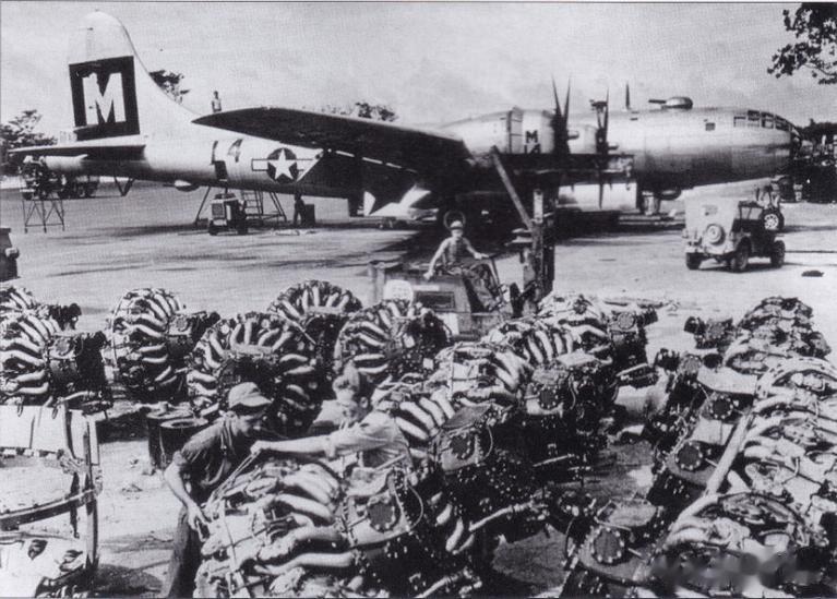 艾利机场上堆放着B-29的发动机,极为强劲的后勤保障是赢得胜利的基础。
