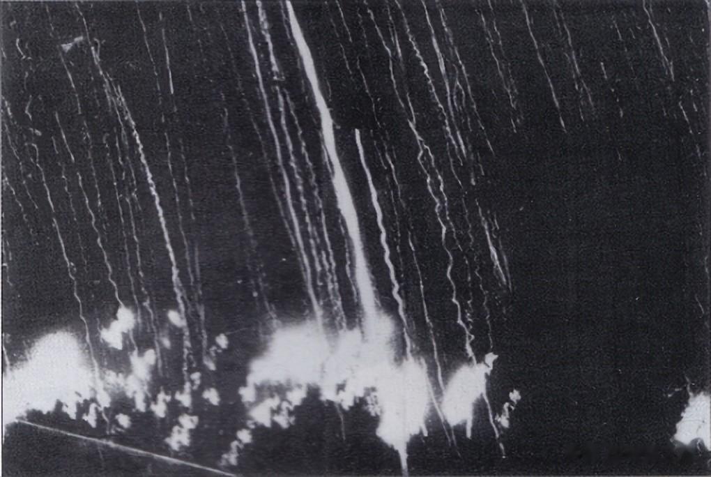 第878中队马歇尔的日志记述,他们当时位置靠近大部队中央,艰难克服了沿途的气象锋面,保持在既定的1524米高度。离陆地还有约30分钟时,就看到目标区域发出的橙色亮光,那当然就是前面的飞机“划了他们的火柴”。