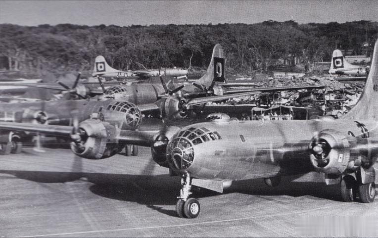 驻关岛北机场的第29轰炸机大队B-29开始出动,滑行道一时间有点拥挤。