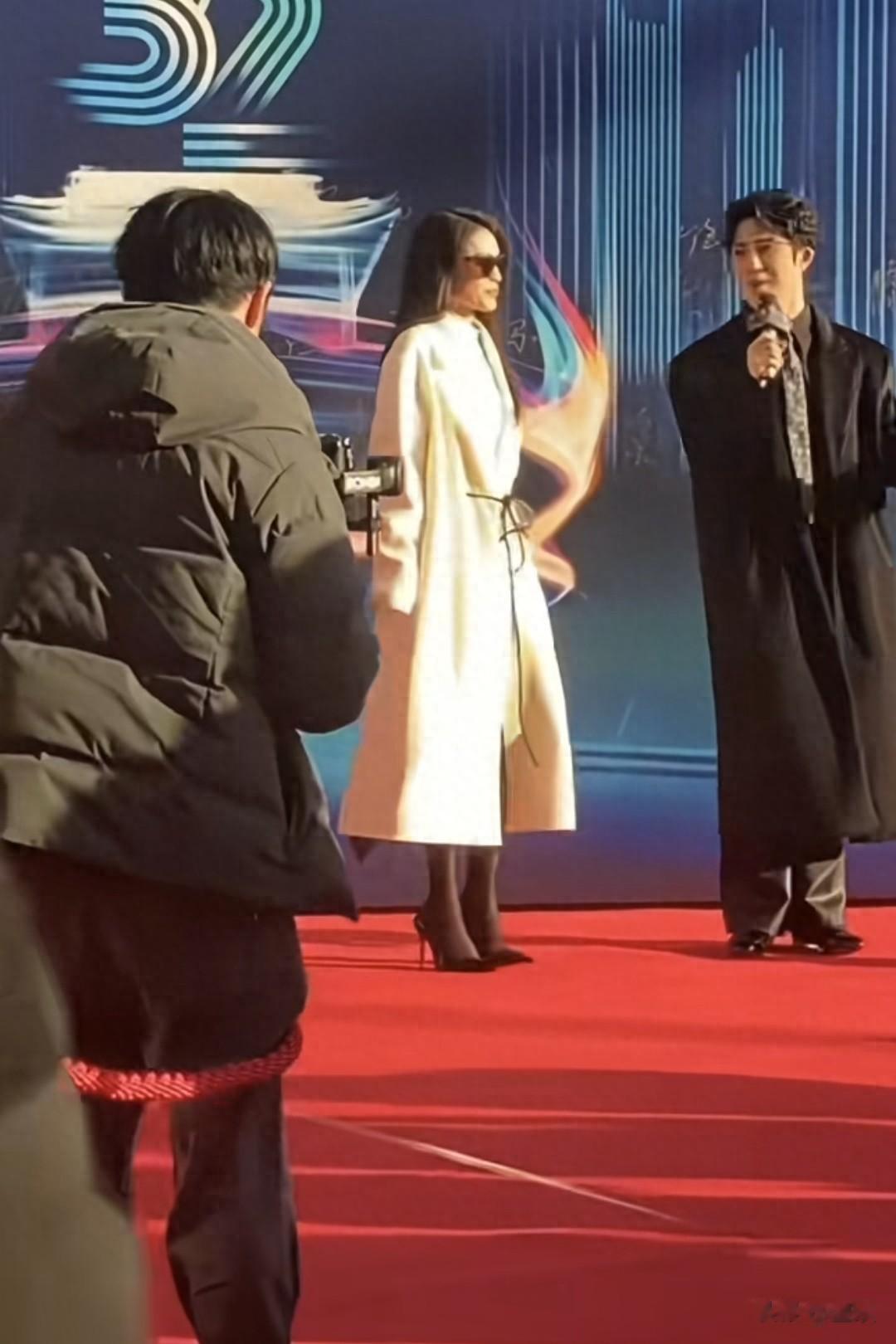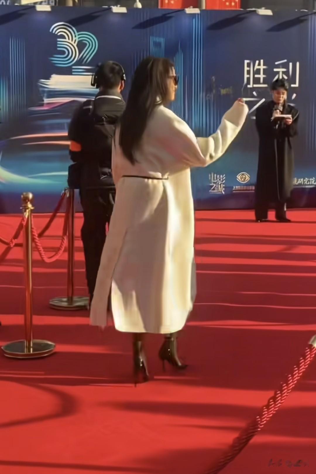 舒淇亮相活动现场,在这场活动的红毯上,舒淇身着一袭白色长款大衣,搭配黑色高跟鞋与丝袜。她戴着墨镜,气场全开,与身旁的嘉宾