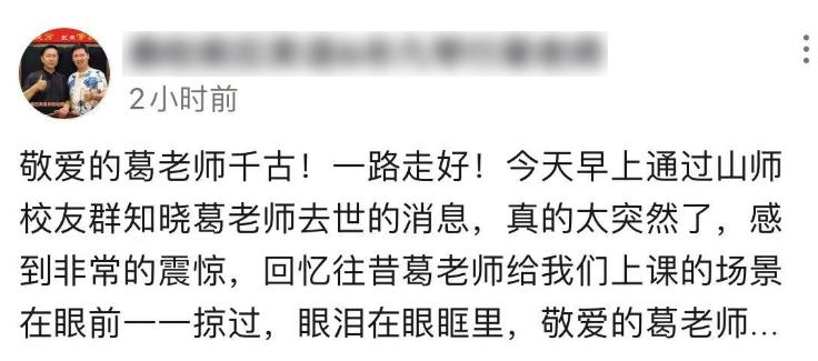 葛老师去世的消息一经传出,不少学生纷纷留言表示哀悼,从学生的悼文中可以深切感受到,葛老师生前深受学生爱戴与敬仰,他的猝然离世也将成为学生们内心永远无法释怀的痛楚。