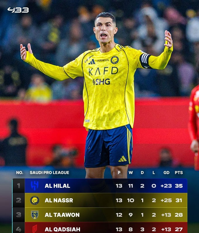 尽管个人纪录不断刷新,克里斯蒂亚诺·罗纳尔多(C罗)却正面临又一个可能颗粒无收的赛季。在刚刚结束的一场沙特职业联赛中,他效力的利雅得胜利1-2不敌阿尔卡迪西亚,连续三轮不胜,争冠形势急转直下。