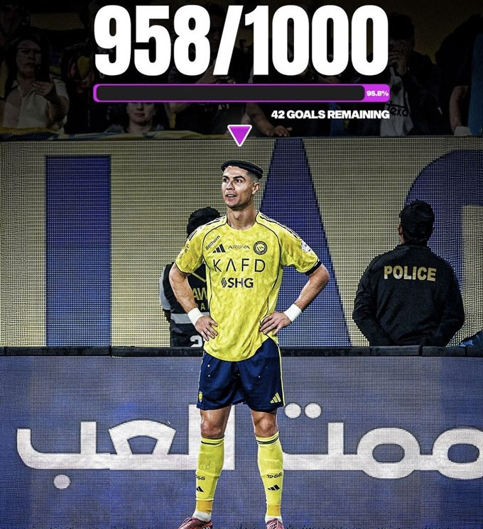 截至目前,C罗职业生涯总进球数已达958球,距离历史性千球大关仅差42球。这一数字仍在稳步逼近,而他的稳定性也令人惊叹——跨越四个十年,从曼联到皇马、尤文、曼联二进宫,再到如今的沙特联赛,他始终是进球机器。