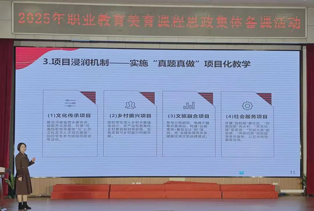 近年来,信阳艺术职业学院立足“因艺术而生、因美育而兴”的办学定位,将美育作为落实立德树人根本任务的重要抓手,纳入学校中长期发展规划和年度重点工作,构建起覆盖课堂教学、实践活动、校园文化、社会服务的“大美育”育人体系。学校整合校内外资源,打造“书香艺境”“美育拾光”“艺润课堂”等一批特色美育品牌,形成“动静相融、课展联动”的美育生态,推动美育从课堂走向生活、从专业走向普及、从校园走向社会,让审美教育渗透人才培养全过程。