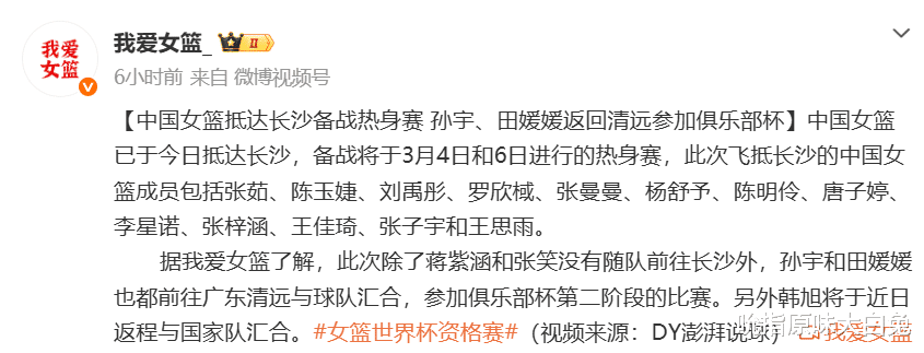 先是打热身赛,中国女篮VS巴西,比赛时间确定,第一场是在3月4日19:30,第二场是在3月6日19:30,第三场热身赛是打捷克女篮,比赛时间是3月8日19:30。随后中国女篮就去武汉打女篮世预赛,好消息是李月汝和韩旭回归了,两人状态都不错。