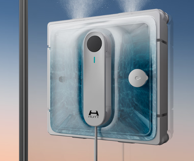 采用经典的“方形圆角”机身设计,这种形状比圆形更利于贴近窗框直角,减少清洁死角。再搭配一个大扭矩电机驱动单清洁盘进行高速旋转擦拭。通过外置独立水箱供水和机内微型泵,实现自动、定量的雾化喷水。喷水时机由传感器根据污渍情况或预设程序控制,这样可以保持抹布湿度均匀,避免水痕。