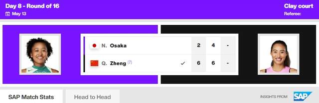 在北京时间5月13日进行的WTA1000罗马站第四轮赛事中,郑钦文与拥有四届大满贯冠军头衔且曾是世界第一的大坂直美展开了激烈的对决。在这场比赛中,郑钦文以出色的发挥,以6-2和6-4的比分战胜了对手,成功实现了连续两年闯入罗马站八强的壮举。